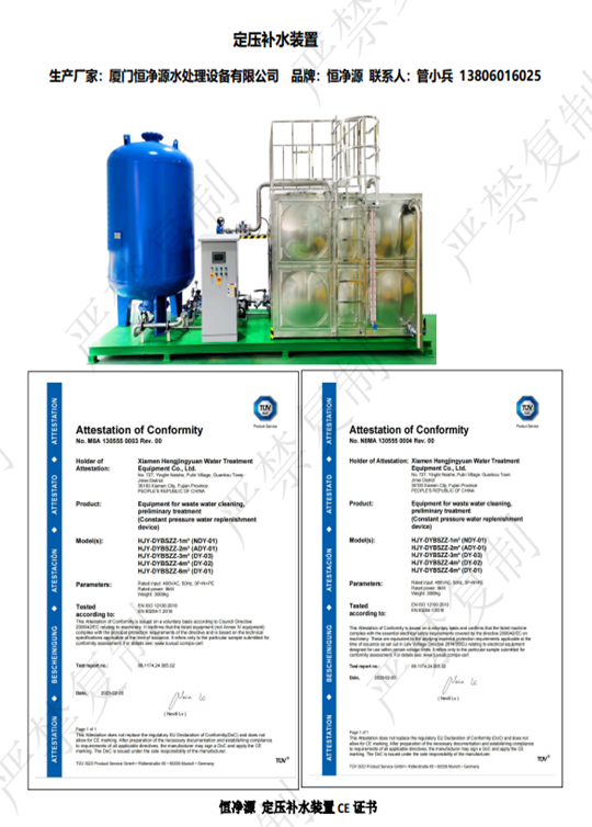 定壓補(bǔ)水裝置 CE 證書